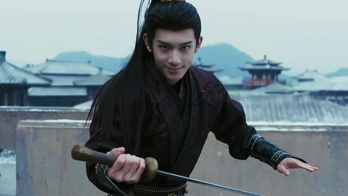 林沐然身高183cm,身形挺拔如松,古装造型清隽利落,高马尾配玄甲,英气凛然中透着几分冷冽杀意。